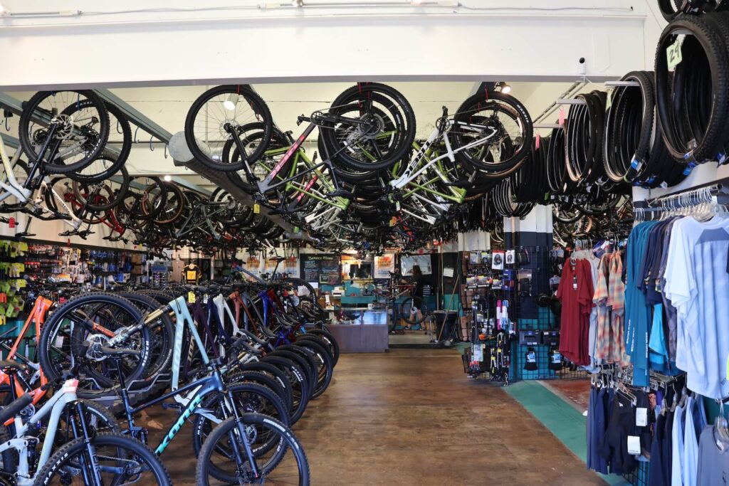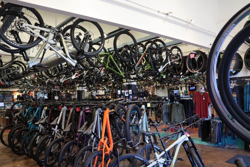 The Broken Spoke fills that large space with bikes, packed tightly together. I’m not sure how much the photos will convey, but there’s simply a lot to take in. They carry brands like TREK, Yeti, Kona, and Surly. I noticed a strong presence of MTBs.
