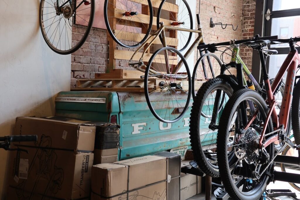 当日はお客さんが多く、あまり長く話すことはできませんでしたが、ゆっくりと店内を撮影させてもらいました。取り扱い車種は幅広いですが、印象としてはグラベルとMTBが中心。SALSAが多く、CRUST BIKESも並んでいます。店内はとてもモダンでありながら、いかにもアメリカらしい空気感もあり、居心地の良い空間でした。