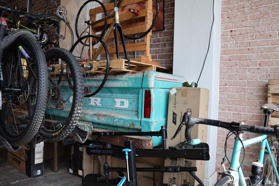 個人的に目を惹かれたのは、レジカウンター背面の壁面デザインと、さりげなく飾られていたトラックの荷台部分。この独特な雰囲気がとても好みです。ちなみにDISTRICT BICYCLESのロゴや壁面のデザインは、Champagne Rodmanというアメリカのイラストレーターによるもの。彼とは少し縁があり、今回の旅では結果的に、彼のアートワークに何度も触れることになります。彼については、またどこかで改めてしっかり書こうと思います。